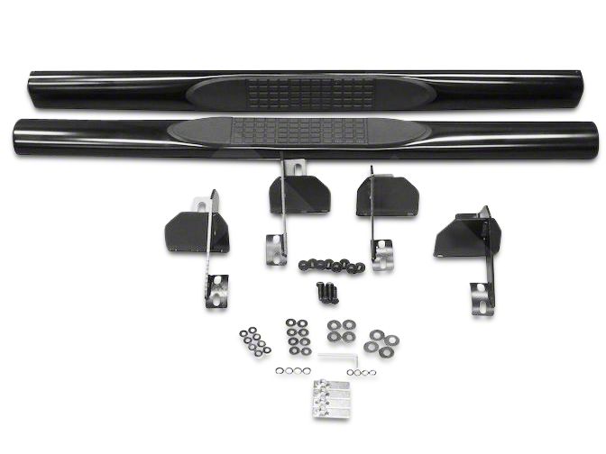 Sturdy Construction. These tubular side steps are constructed from sturdy stainless steel with a chunky, 3-inch diameter. The tubes are finished with a durable, glossy black, powder-coat finish.