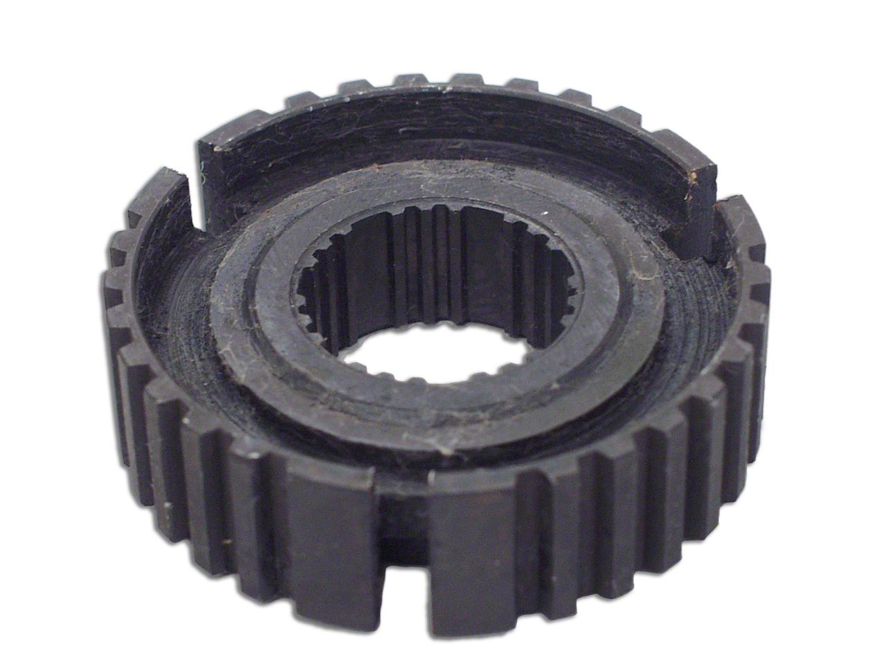 Teeth for Mesh. This transmission gear synchronizer hub provides a smooth transition of 3rd and 4th gear components. The hardware comes forged from complete solid metal with inner and outer dog teeth construction for prime gear mesh and movement. This hub is for use with Jeep Wrangler transmissions built after 1988.