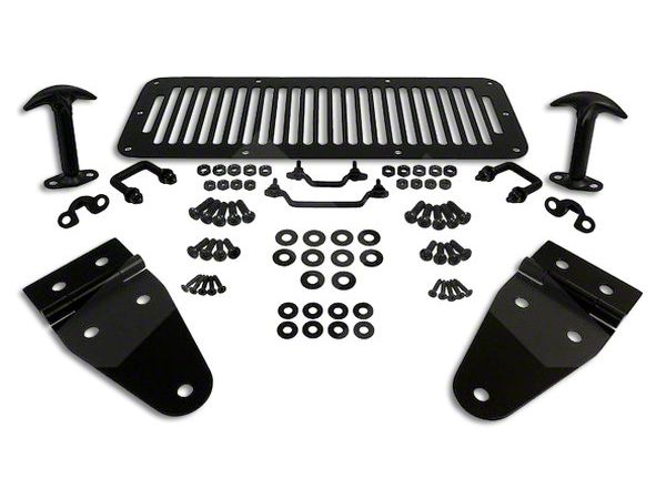Custom Hood Styling. Having a revved up Wrangler is not enough. You also need a rich distinctive look for your Jeep to stand tall above the rest. This Black Hood Kit comes with everything you need to transform your ordinary Wrangler into the icon of the show and the talk of the streets with an incredibly sleek, yet aggressive appeal.