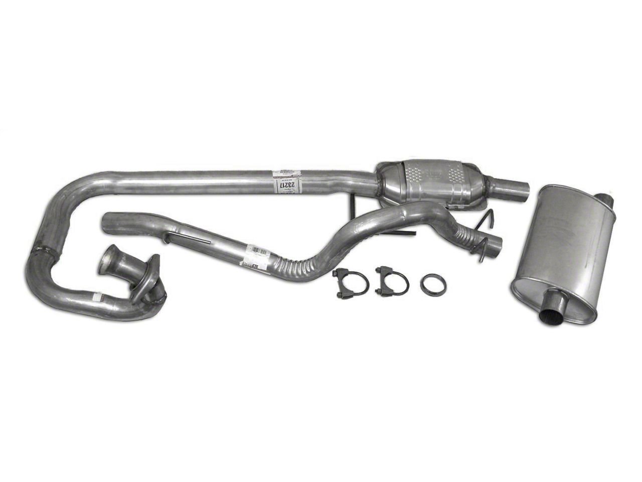 Superior Upgrade. This Complete OEM Exhaust Kit is the perfect addition for your Jeep Wrangler 4.0L TJ if you need to replace your factory exhaust that is leaking or has rusted out. This superior quality upgrade was manufactured with precision engineering to ensure that there is a perfect fitment in your vehicle and it provides enhanced performance value. You can take to the road in confidence with this exhaust system installed in your Jeep.