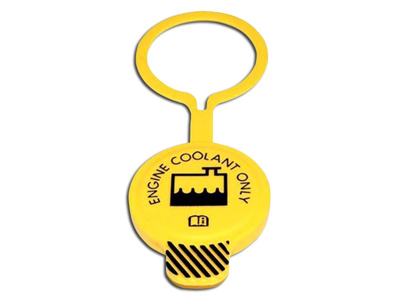 Eye-Catching Yellow. Not only is this cap a top-notch style addition, but it also features a head-turning bright yellow finish as well as writing and pictures that help to signify the coolant recovery tank beneath it. Thanks to this cap, you'll always be able to tell exactly where your coolant tank is for a safer and easier function.