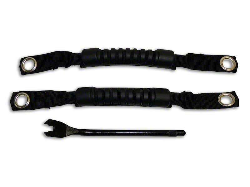 Installation Tool Included.You receive an installation tool in this Door Grab Handle Kit to speed up and simplify the installation. Each handle easily mounts directly to the rear sports bar or sound bar already on your Jeep (sold separately), using existing factory hardware.