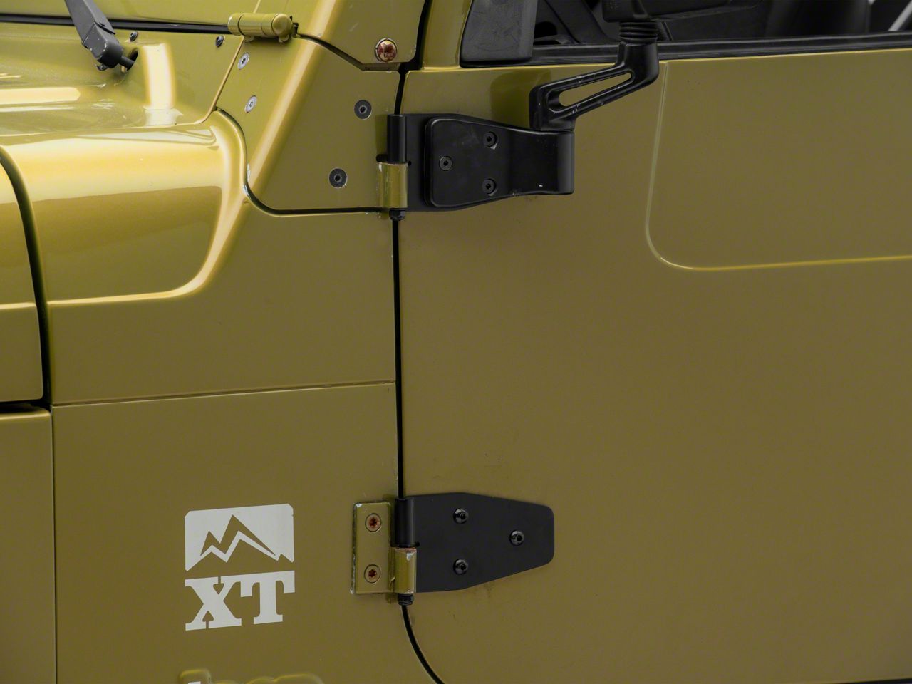 Restore Smooth Door Operation to Your Jeep Wrangler. Everyday impacts, weather and debris can deteriorate your Wrangler door hinges over time. This black stainless Door Hinge Set is your answer for returning your door action to like new condition. The components match factory OEM specifications and are as strong, if not stronger than the stock units.