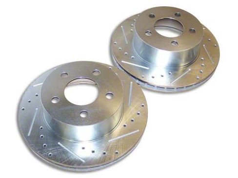Tested Over the River and Thru the Woods. This front pair of Drilled & Slotted Brake Rotors is designed to take extreme abuse. They've been tested on steep descents in Utah, stop and go traffic in Boston, and on the long drives in-between. Machine slotted and cross drilled for maximum cooling, this bold and innovative design helps eliminate brake fade and potential warping by rapidly expelling debris and water from the rotor and pad surface.