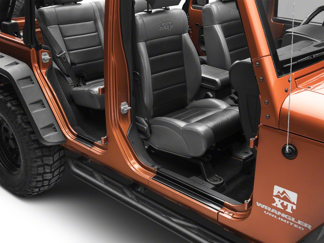 Protect Your Interior Door Sill. As a Jeep driver, you and your Wrangler will probably see a lot of action on the road and the trail. Frequent cabin ingress and egress can leave foot marks, scratches and scuffs on your lower door sill. Protect the appearance of your Jeep interior with this black Entry Guard Set. The kit also covers up existing marks, giving your door sills a clean, new car appearance.
