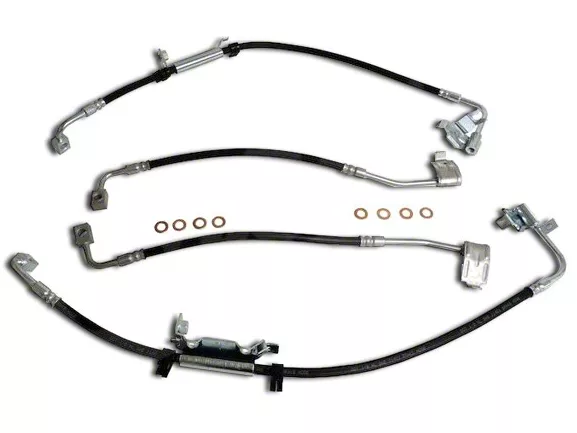 Combination Construction. This Front & Rear Brake Hose Kit is a direct replacement upgrade for your Wrangler's factory hoses. Normal brake hoses can dry out over time and become cracked. This hose kit can withstand even the toughest situations both on the road and off it. Crafted from a combination of steel, rubber, and copper, this kit features black, silver, and copper tones.