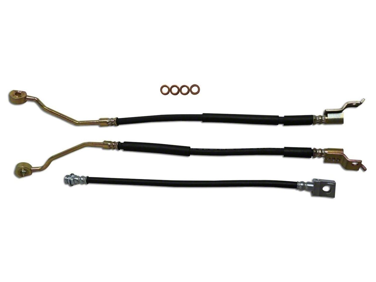 Direct Fit Replacement. The brake hose kit is designed to be application specific and requires no additional modification. However, note that it will reuse existing hardware and this should be ordered separately if they’re missing or damaged.