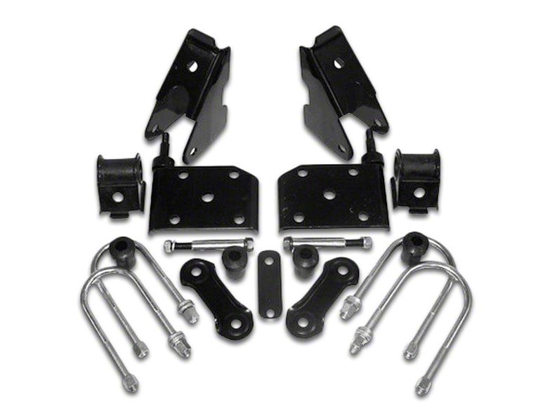 Quality Construction. As its name suggest, this front spring mounting kit adjust the front lift of your vehicle. The kit features high-quality metal parts. All the kit components are finished in black and/or silver for a combination of style and function.