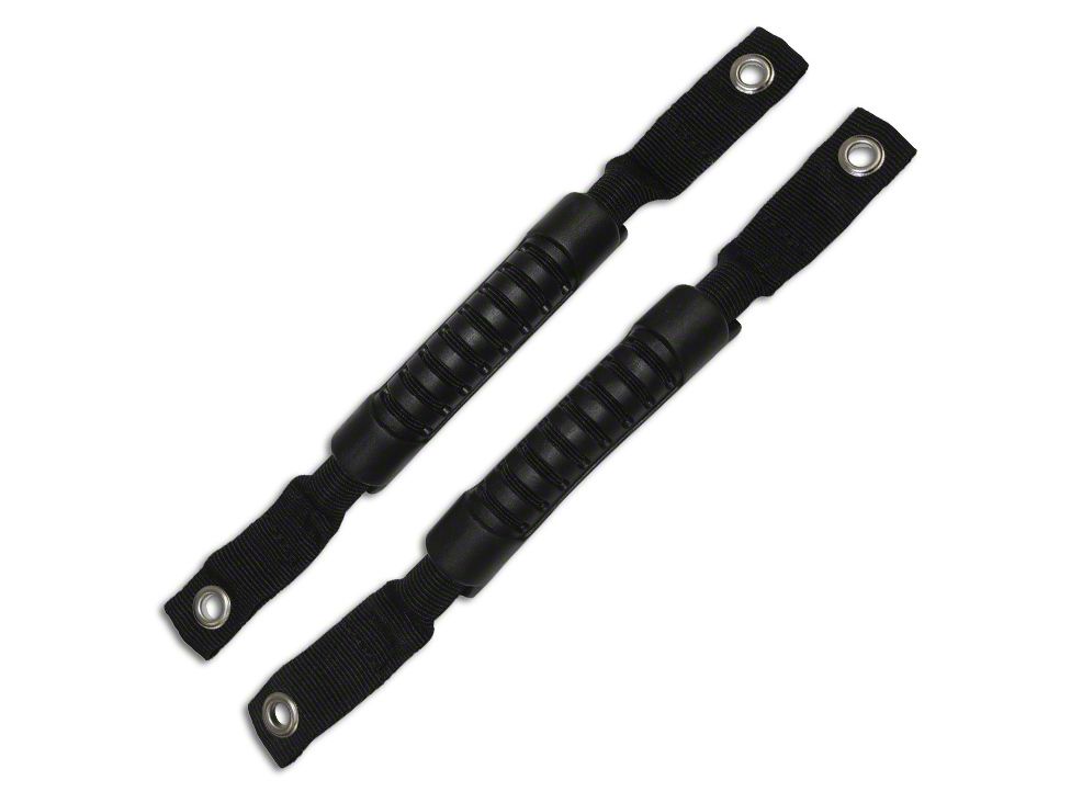 Add Convenience to Your Jeep. Tired of your passengers and you flailing around when hitting rough trails? Annoyed by people complaining that it is hard to get into your 2-foot lifted Jeep? Add the safety and convenience of having hardpoints for your passengers to hold on to with these Grab Handles in black. These grab handles add a secure location for you and your passengers to grip on when entering and exiting your Jeep Wrangler.