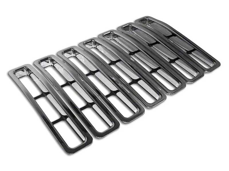 Sleek Style. These Grille Inserts in Chrome give a sleek, clean look to your 1997-2006 Jeep Wrangler TJ. The set of 7 inserts gives your vehicle a unique, custom appearance, while also providing much-needed protection to your front grille. Use these to add a touch of chrome style and a layer of rugged armor to your vehicle.
