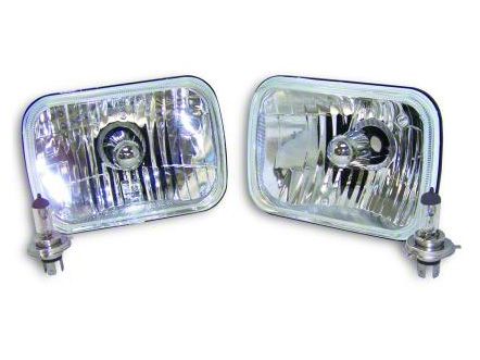 Bright Lighting. To improve both the look of your Wrangler YJ and your vision at night, try fitting this Halogen Light Conversion Kit instead of your OEM headlamps. Both lamp assemblies are rectangular with dimensions of 7 inches x 6 inches (200mm) and the brilliant light will be a distinct advantage over your current headlamps. Make sure your nighttime driving is exciting, not fraught with anxiety over difficult-to-see obstacles.