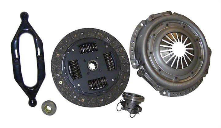Direct Clutch Replacement Kit. Coming from Crown Automotive, this Jeep Wrangler Clutch Kit restores your clutch to factory quality. It comes with a 10.5-Inch full-face spring clutch disc, which has a 10 spline output. Each spline measures 1-1/8 Inches, matching the OEM standards of your stock disc. This kit also comes with several other replacement parts, including a diaphragm-style pressure plate, clutch fork, and both pilot and throwout bearings.