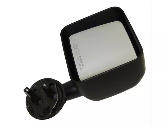Built to Last. Much like your stock side mirror, this replacement mirror comes in a sturdy plastic housing that can withstand impacts with trail debris and brushes against branches and bushes. The solid black finish also means the mirror easily matches the look and feel of your Wrangler.