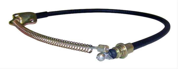 Black Plastic Jacket. The cable is encased in a durable black plastic jacket, offering protection against wear and environmental elements. Specifically engineered, this parking brake cable is perfect for Jeep owners seeking a high-quality, reliable solution for maintaining or restoring their vehicle's parking brake functionality.