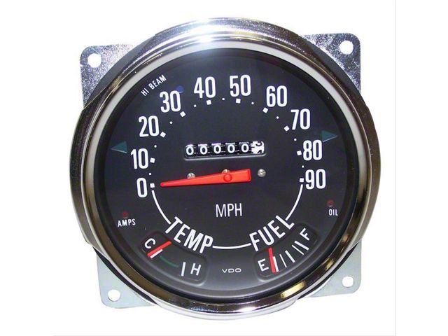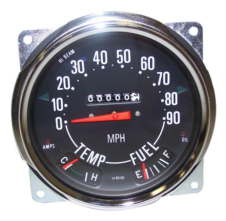Vintage Styling. It may be time for your Jeep to get a visual and performance upgrade. This Jeep Speedometer Gauge is a direct fit replacement part for your older factory gauge. Its multi-functionality allows you to monitor fuel, speed, and temperature. Two lights can inform you about the voltage and oil situation, so you can pretty much monitor all critical engine systems from a simple analog speedometer cluster.