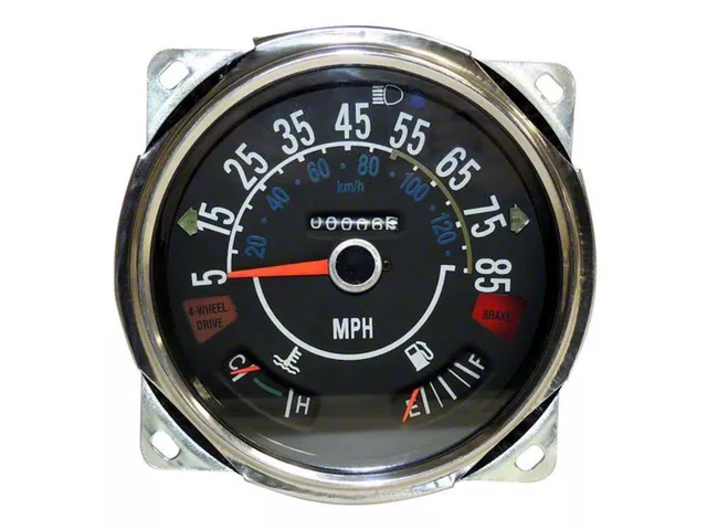 Jeep Series. Monitor your Jeep Wrangler’s speed with this speedometer by Crown Automotive. Large white measurements on black background ensure easy and accurate readings. Additionally, the speedometer includes fuel level and temperature gauges, oil, amps, and high beam indicators. This speedometer gauge is identical to the original Jeep Wrangler factory part and is highly useful for keeping your engine systems under control.