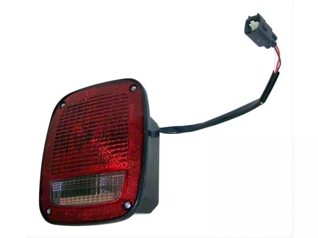 Exact Replacement Style. Repair your damaged Wrangler tail light on the passenger side with this Jeep Wrangler Tail Light Assembly. This replacement part is an exact match for the stock part, and it installs quickly and easily as well. The light offers the same brake and reverse light output as before and looks very close to the original when installed, making it a convenient replacement. This replacement is good for 1998 to 2006 Jeep Wrangler models.
