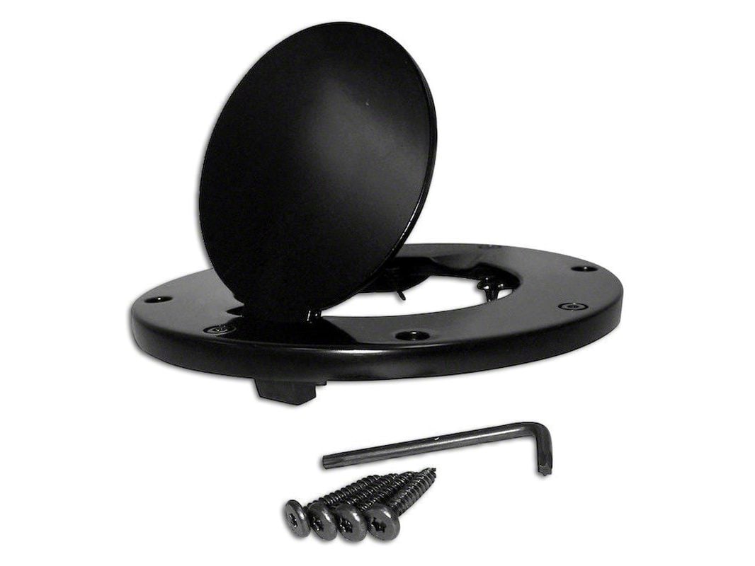 Corrosion Resistant. Covered in a black, powdered finish, this fuel door is resistant to both weather or chemical corrosion.