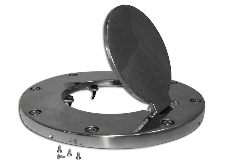 Stylish and Protective. Coated in a sleek brushed aluminum finish, this non-locking fuel door will provide added styling to your Wrangler. It is resistant to all types of weather and corrosion, and protects against accidental gas spills too.