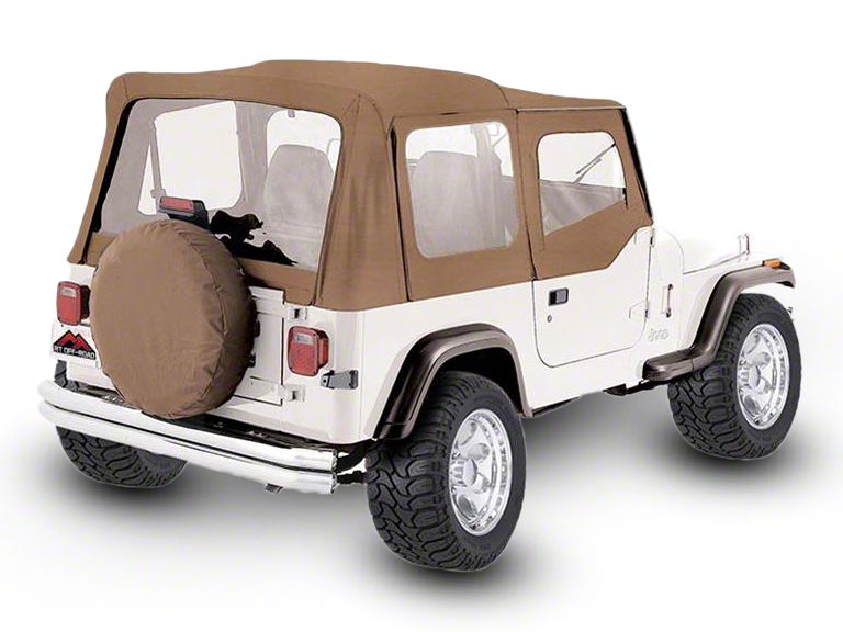 Quality Replacement Top. These OEM Replacement Soft Top comes with windows and door skins to replace worn out and tattered OEM soft tops. This spice-colored tops is DOT approved and also easy to use. Manufacturer designed this soft top to match OEM specifications. Therefore, installing it maintains your YJ’s factory look.