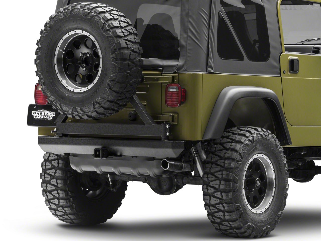 Application. This RT Off-Road Rear Bumper with Tire Carrier is designed to fit any 1987-2006 Jeep Wrangler YJ and TJ model.