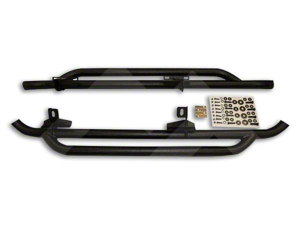 Rugged Run-on. The textured black finish of these side guard tubes give your Jeep an aggressive look, boosting your rugged reputation. With these fearsome guards, you are sure to turn heads when you pull up to the trail head.