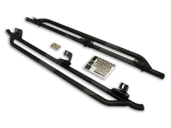 Durable Defensive Construction. Manufactured from durable stainless steel, these side guards mount directly onto your rocker panels without any need for drilling or complicated machinery. Sporting a stealthy black powder coat, this Side Guard Set blends right in with your Wrangler’s existing aesthetic.