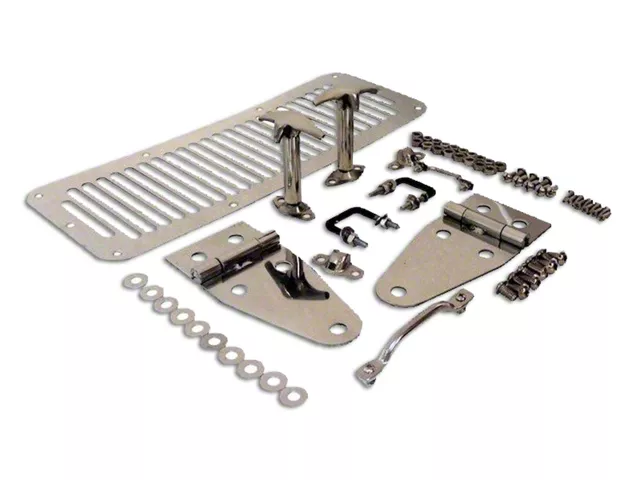 Stand Out From The Rest. Revving up your Wrangler is unique, but its time to set yourself out of the pack with a rich distinctive look. This Stainless Steel Hood Kit comes with everything you need to transform your ordinary Wrangler into the icon of the show and the talk of the streets with an incredibly sleek, yet aggressive appeal.