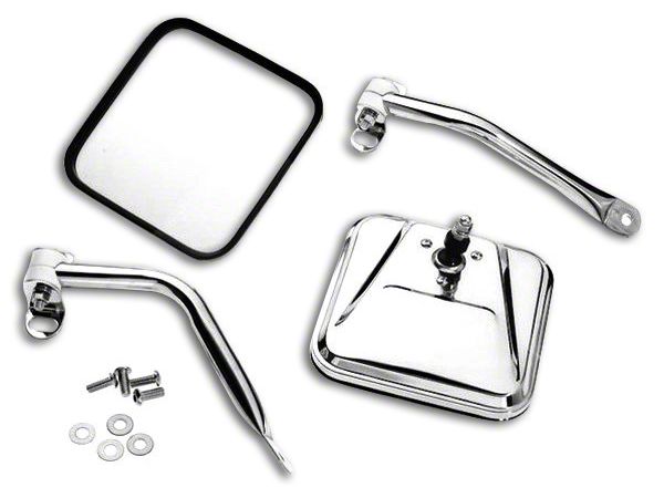 Excellent Visibility. Your 1976-1995 Jeep CJ5, CJ7 and Wrangler YJ Models stock side mirrors need to be replaced if they fall off or even when they get stolen. Driving without side mirrors is strenuous and also compromises your safety. Install this Stainless Steel Side Windshield Mirror Kit - Pair to guarantee the safety of your on-road and safety travels. These mirrors are designed to eliminate all possible blind spots on both sides of your Wrangler, thus making your drives safer, less strenuous, and more enjoyable.