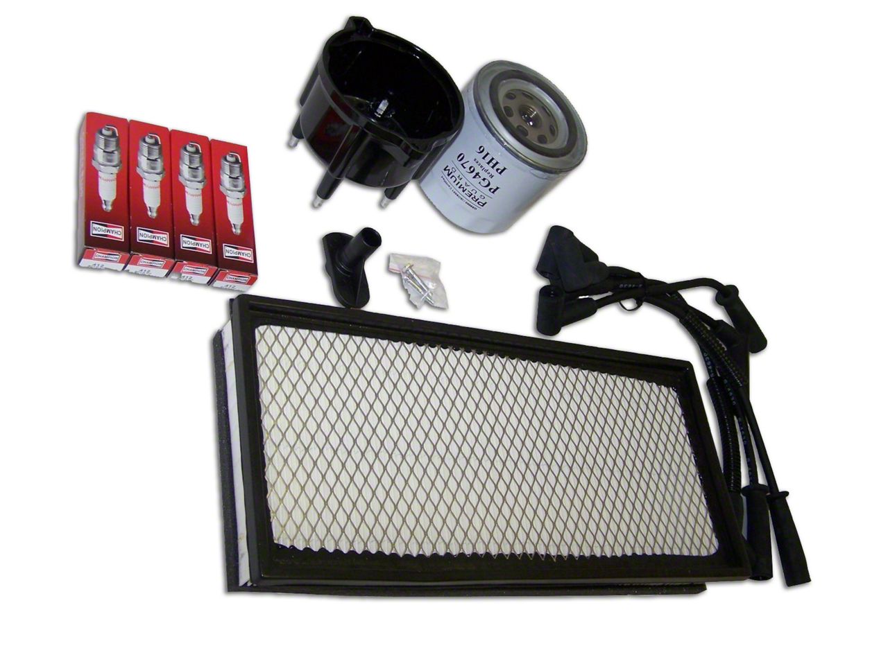Keep Your Engine Running Strong. This Omix-ADA Tune-Up Kit is the perfect way to give your Jeep Wrangler TJ a performance boost by allowing your engine to perform to its full potential. Over time, the performance of your Jeep Wrangler may decline as oil and air filters become clogged up with dirt, spark plugs begin to fail, and other components start to degrade. Removing these faulty parts and installing the replacements in this kit can provide an immediate boost to the overall efficiency and performance of your vehicle.