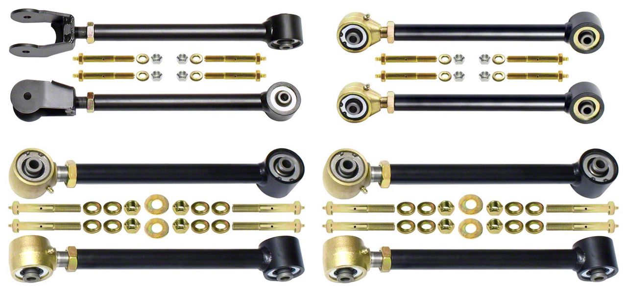 Extreme Performance. Ensure the best performance through the roughest terrain with the RockJock Johnny Joint 8-Piece Control Arm Set. Designed and crafted for the extreme abuse of the trail, these heavy duty control arms are fully adjustable to suite your TJ's lift today or down the road while still providing the uncompromising control you'll need for superior articulation.