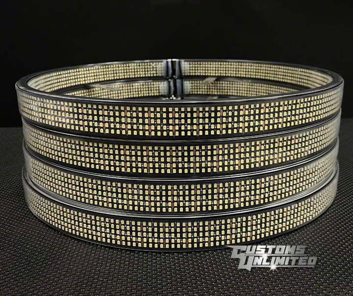 Light Up the Night with Aggressive Wheel Illumination. These Ten Row Ultra High Intensity Wheel Lights by Customs Unlimited are built for maximum glow and visual impact. Designed with show trucks and night trail rigs in mind, they add a bold lighting effect that turns heads while increasing low-profile visibility around your wheels.