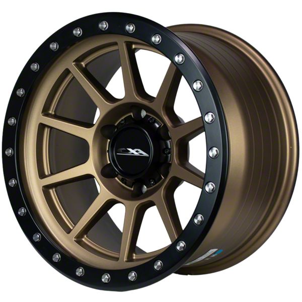 CXA Off Road Wheels CX4 SPRINT Texture Bronze with Black Ring 6-Lug Wheel; 17x9; 0mm Offset delivers a bold and modern aesthetic, ideal for enthusiasts seeking a refined yet assertive look for their vehicle. With its standout design and distinct finish, this wheel enhances the vehicle's visual stance and street presence. The precise craftsmanship and premium aluminum build reflect CXA Off Road Wheels' dedication to quality and distinctive design. Whether parked or in motion, this wheel draws attention with its clean, aggressive styling.