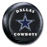 Show your Dallas Cowboys team pride with this great NFL tire cover by Fremont Die. Made with heavy gauge vinyl with an elastic tie down, these football team logo wheel covers will fit snugly and securely to your spare tire. These tire covers universally fit the sizes shown below and are water resistant. These durable wheel covers are easy to clean with a damp cloth.