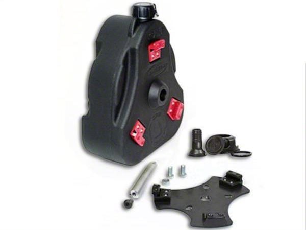 2 Gallons. If you plan on taking your 1997-2018 Jeep Wrangler TJ or JK out on the trails for a long period of time, make sure you install Daystar's Tan Cam Can Complete Kit for Non-Flammable Liquids. This kit stores 2 gallons of non-flammable liquids, namely water, so that you never run out of the stuff you really need on the trail.