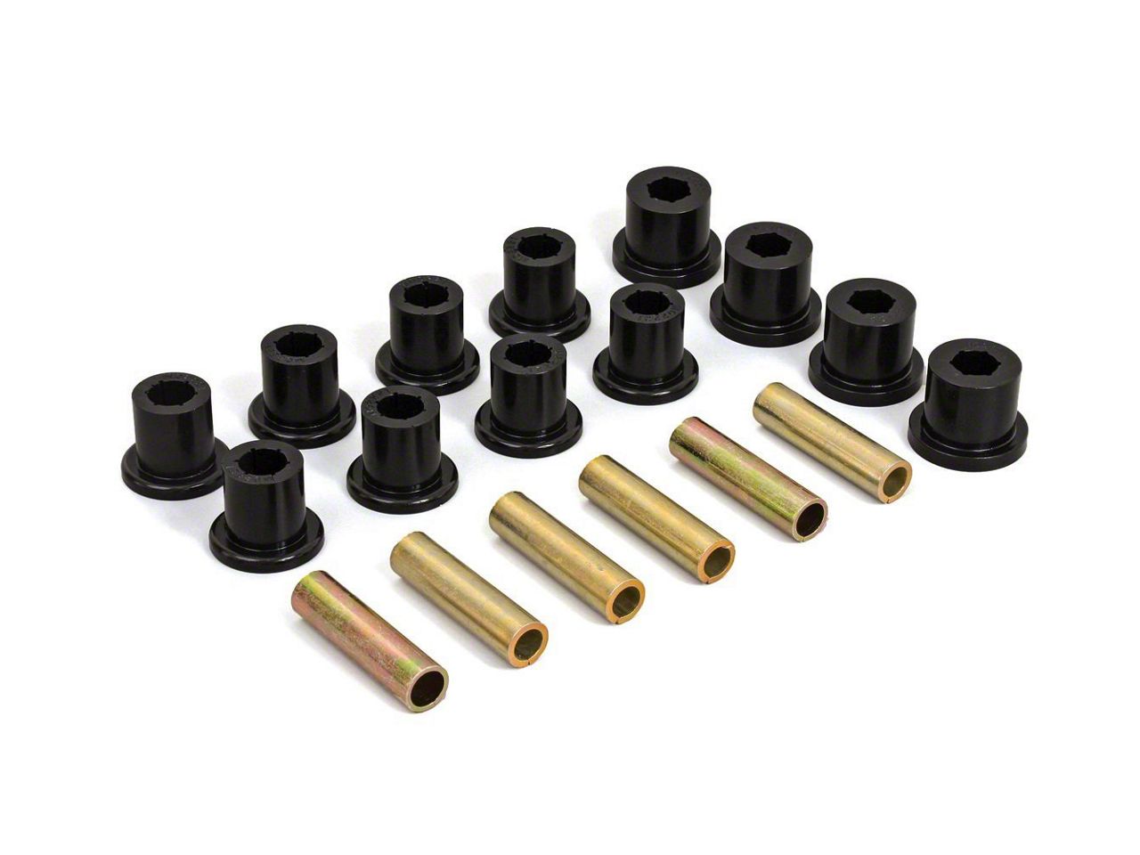 High-quality Polyurethane Construction. The high-density and high-quality polyurethane construction of the Front or Rear Leaf Spring & Shackle Bushings by Daystar improve the durability of the bushings ensuring that they last longer and function better than your Wrangler’s OEM parts. It also allows the springs to function properly and makes for superior handling and a smoother drive.