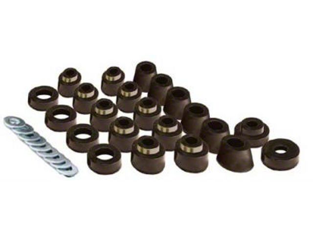 Performance-Oriented. Unlike OE rubber, Polyurethane Body Mounts do not flex, deflect, or sag over time. Polyurethane is designed to be a perfect middle ground between the soft, compliant ride of rubber and the overly firm, teeth jarring ride of aluminum or other alloy materials. This equates to a mount that, while still comfortable enough to drive regularly, performs similarly to a solid mount for a stiffer, sportier driving experience.
