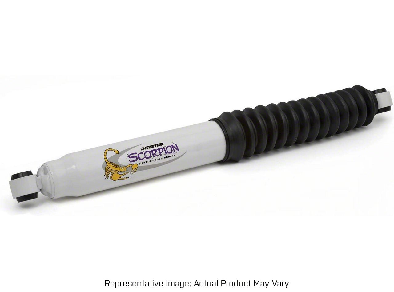 Quality Components. The Daystar Scorpion Performance Rear Shock for 3 in. Lift is a twin tube internal design incorporating a chrome-hardened piston shaft for durability and corrosion resistance. Velocity-sensitive valving insures that the shocks will respond to bumps both big and small. The bushings are polyurethane for stiffness and durability and the entire shock is protected by a polyurethane boot to keep out the elements.