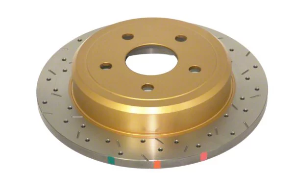 High-Performance Rotor. The DBA 4000 Series XS Gold Cross Drilled and Slotted 6-Lug Rotor is a premium performance rotor engineered for demanding driving conditions. Specifically designed for rear applications, it enhances stopping power and consistency by efficiently venting brake pad gases and reducing fade under load. This rotor is ideal for those seeking to upgrade the braking performance of their vehicle.