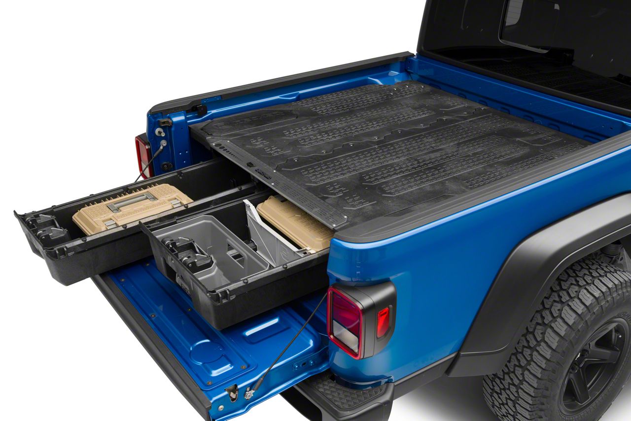 Keep Storage Simple. This DECKED Truck Bed Storage System will keep things neat and orderly in the cargo area of your Jeep Gladiator. Built strong, this storage system can handle quite a bit and the effort put forth on organization will be rewarded with security in the form of lockable drawers.