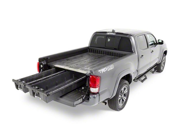 Organized Storage. Easily haul your play or work gear with the DECKED Truck Bed Storage System. This DECKED Truck Bed Storage System features two bed length drawers and ammo can storage compartments to keep your gear organized. The easy roll drawers make accessing your gear easy and convenient. This Bed Storage System is designed to lock with your tailgate to deter potential thieves.