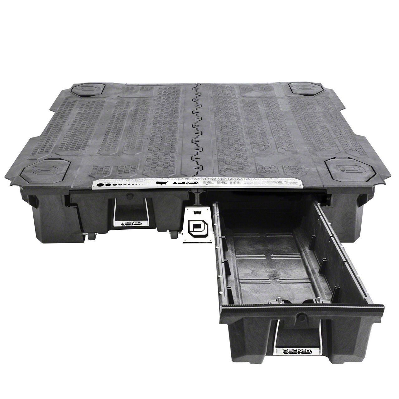 Organized Storage. Easily haul your play or work gear with the DECKED Truck Bed Storage System. This DECKED Truck Bed Storage System features two bed length drawers and ammo can storage compartments to keep your gear organized. The easy roll drawers make accessing your gear easy and convenient. This Bed Storage System is designed to lock with your tailgate to deter potential thieves.