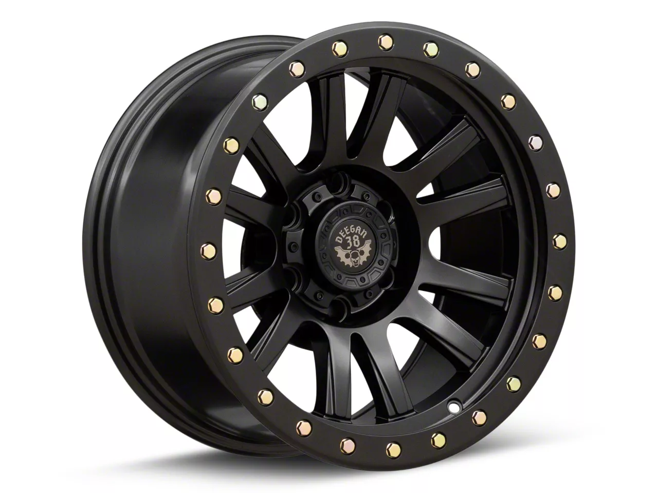 Satin Black Finish. This Deegan 38 by Mammoth Wheel is completed in a high quality black finish for an aggressive appearance that looks great on or off-road. For added protection and durability, this Wheel features a satin clear coat that is tough enough to stand up against the hazards of everyday driving - including road chips and pitting.