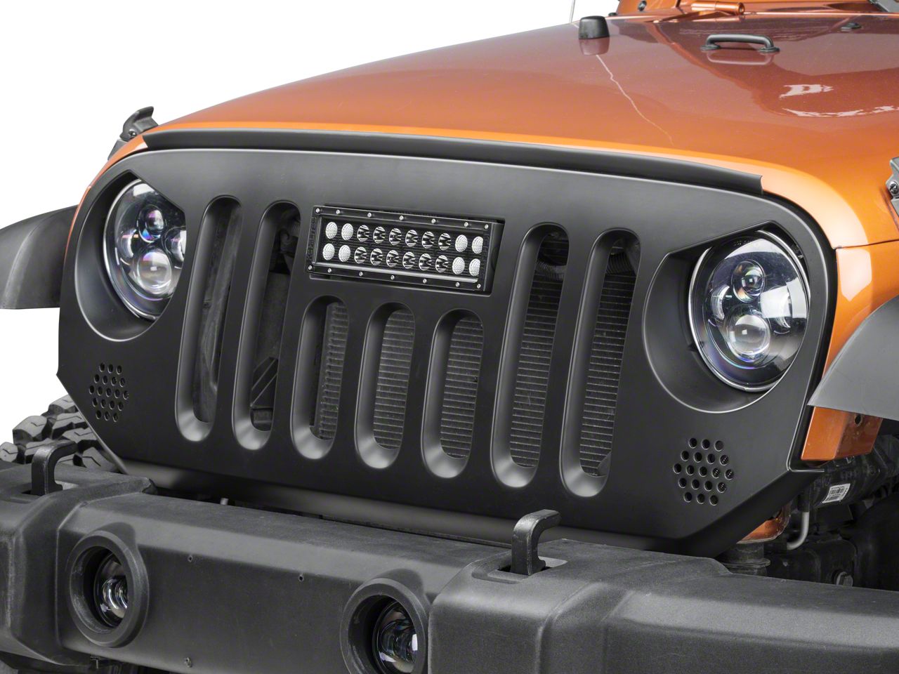 Aggressive Off-road Styling. Installing a Deegan 38 Grille, that includes a 10-inch LED Light Bar, is a great way to add a more aggressive look to your 2007-2018 JK Wrangler. Designed to replace your factory grille, this Deegan 38 Grille with its angry eyes design will transform the appearance of your Jeep Wrangler from a mild mannered street vehicle into an aggressive off-road warrior.