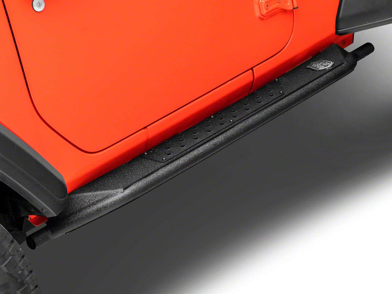 Style and Function. A set of black textured Deegan 38 Tubular Side Step Bars will give your 2-door 2018-2026 JL Wrangler a rugged appearance, while providing a convenient, secure step for easy entry in and out of your JL. As an added bonus, these Deegan 38 Side Steps will also provide additional protection from both road and trail debris that can be kicked up and scratch your paint.