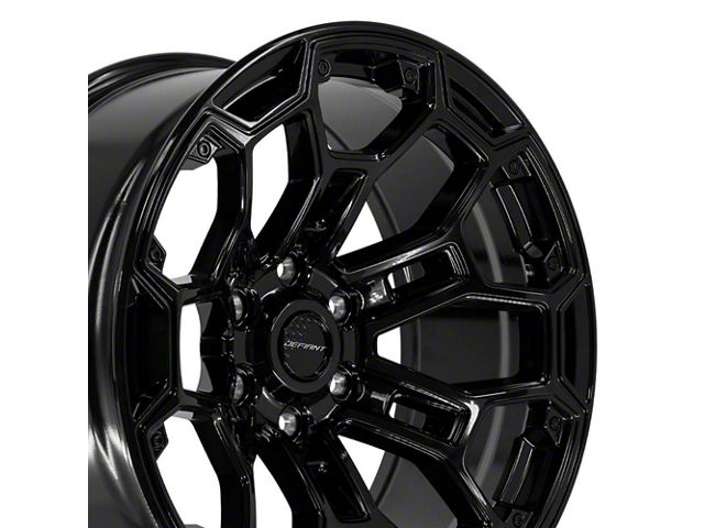 Defiant Wheels DF03 Gloss Black 6-Lug Wheel; 20x9; -12mm Offset is a visually striking choice, offering a combination of rugged durability and modern styling. Its design complements off-road and sporty vehicles alike, enhancing the overall aesthetic appeal.