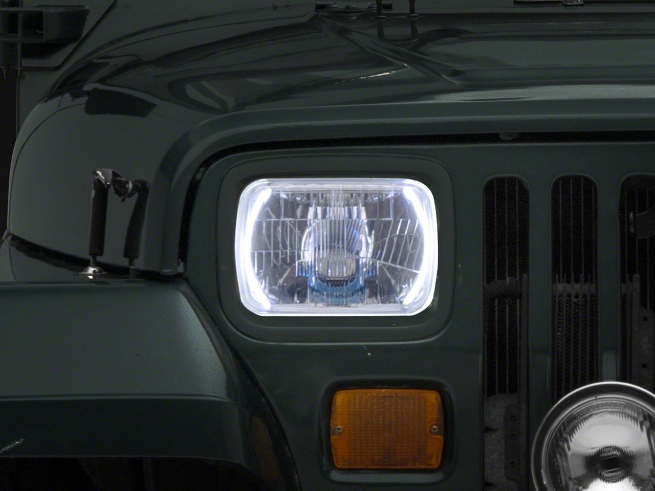 Application. The Delta Rectangular H4 Xenon Conversion Headlights w/ Halos are designed to fit all models of 1987-1995 Jeep Wrangler YJs.