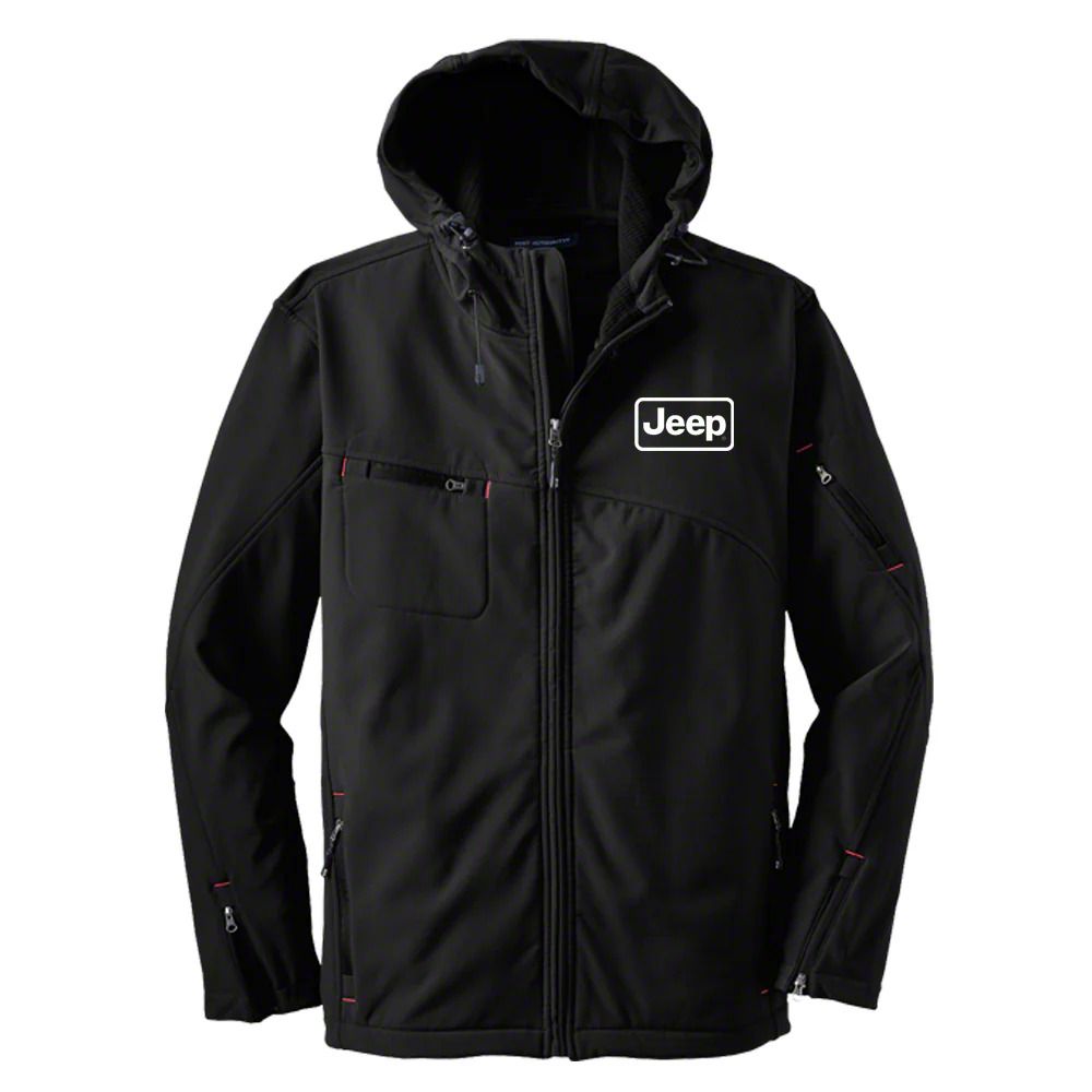 Detroit Shirt Company Men's Jeep Rectangle Logo Hooded Softshell Jacket; Black