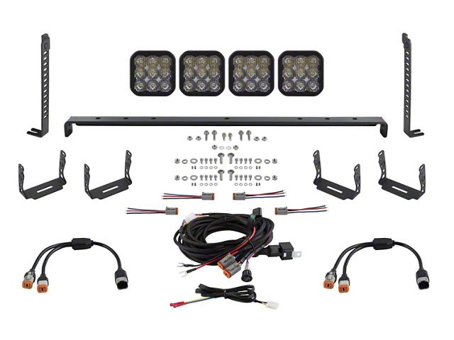 Description. Perfect Fitment. The SS5 Stealth Grille LED Pod Kit for the 2014-2023 Toyota 4Runner from Diode Dynamics allows you to mount two or four Stage Series 5-inch LED pods behind the factory grille without interfering with the Toyota Safety Sense! These application-specific brackets were CAD-designed to bolt into place using factory mounting points on the factory bumper. No cutting or drilling required! This kit retains the factory grille for a clean, OEM-like appearance.