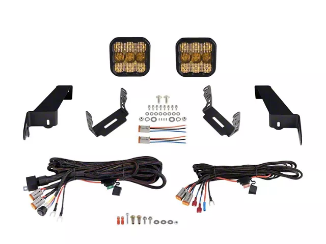 Description. Perfect Fitment. The Bumper LED Pod Light Kit for the 2018-2023 Jeep JL Wrangler from Diode Dynamics allows you to mount two SS5 LED pods on the factory bumper. These application-specific brackets were CAD-designed to bolt into place using factory mounting points. No cutting or drilling required!